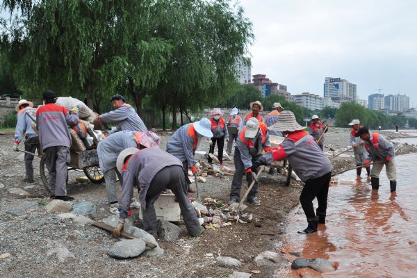 以中山橋為核心的百里黃河風(fēng)情線就是勤勞的蘭州兒女獻給黃河母親的一條綠色項鏈。它不但使黃河變得越來越漂亮,越來越迷人,而且日益成為蘭州兒女高舉黃河文化的大旗,走向世界的城市名片。當(dāng)您徜徉在這綠樹成蔭,鮮花滿地的游覽道上時,您一定注意到了那一抹別樣的風(fēng)景,是的,那正是為了這干凈整潔的街道,默默的付出辛勤汗水的民召人。他們從早上四點就到風(fēng)情線,進行第一次大掃,到晚上六點才離開自己的保潔崗位,風(fēng)情線分公司的席居峰經(jīng)理早上六點不到就出發(fā)去西固接灑水車的司機到中山橋開始用水清洗街道。這并不是一朝一夕的心血來潮,這是十年如一日的堅持。在馬拉松前夜,保潔人員都主動留在辦公室,通宵灑水清洗路面搬運垃圾,為馬拉松的成功舉辦站好最后的一班崗,為了迎接它,每個民召人付出了努力;為了辦好它,每個民召人傾注了汗水;看到它成功,每個民召人都露出欣慰的笑顏……