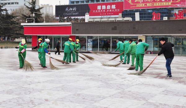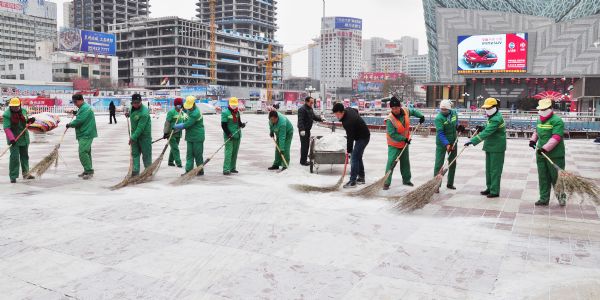 雖然雪下的不大,但氣溫驟降、風(fēng)雪交加還是給掃雪人員帶來了諸多不便,可這沒有影響各項(xiàng)目部團(tuán)隊(duì)清理積雪的熱情,在項(xiàng)目經(jīng)理的帶領(lǐng)下,各班組成員對(duì)自己主管的片區(qū)進(jìn)行認(rèn)真清掃,確保能夠在業(yè)主上班前讓各主干路內(nèi)的行人及車輛暢通無阻,把下雪帶來的影響降至最低。