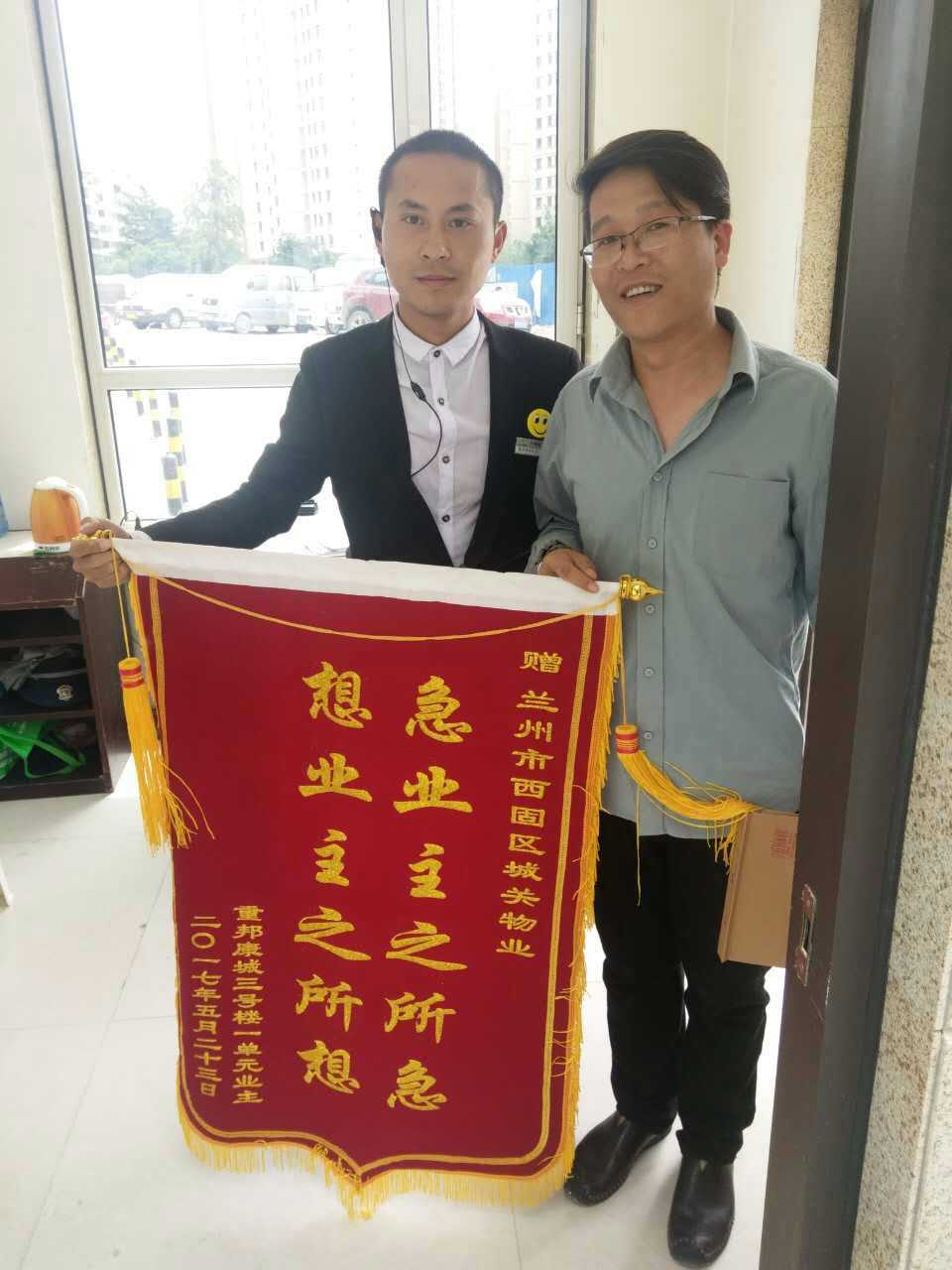 524上午11點左右,重邦康城小區(qū)一戶業(yè)主將一副題為“急業(yè)主之所急,想業(yè)主之所想”的錦旗送到了物業(yè)辦公室,感謝物業(yè)人員在干好本質(zhì)工作的同時,積極熱心的幫忙尋找自家的小狗。該業(yè)主強(qiáng)調(diào),自從入住這個小區(qū)以來,每一天都過的很舒心,城關(guān)物業(yè)工作人員專業(yè)素質(zhì)強(qiáng),服務(wù)熱情周到。在得知小狗丟了的情況下,積極主動的安排人員幫忙尋找,并最終找到小狗。感謝城關(guān)物業(yè)提供如此優(yōu)質(zhì)、貼心、專業(yè)的服務(wù)。田曉晨經(jīng)理說道,業(yè)主的事不論大小,只要有需要,我們定會全力以赴。