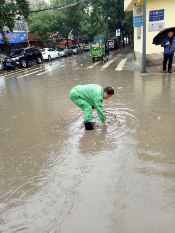 暴雨來襲,城關(guān)物業(yè)每位員工都堅(jiān)守在抗擊暴雨的第一線。保安們在風(fēng)雨中麻利的扛起一袋袋防汛沙袋壘在車庫、地下室等低洼地區(qū)的入口,以防雨水倒灌。保潔員們用清潔工具不停地將室內(nèi)積水往外排,為了保證順利排水,在暴雨中查看下水道口,不顧水浸濕褲管和衣袖,直接將手伸進(jìn)下水道口,把灌入的雜物清出。為了更迅速的排水,他們沒有打傘,兩手握著棍子奮力的疏通下水道。技術(shù)維修部的同事們時(shí)刻查看設(shè)備是否進(jìn)水,是否正常運(yùn)行。雖然是在室內(nèi),可是他們也已經(jīng)渾身大汗,即使是這樣,也一刻不放松。據(jù)第一事業(yè)部王總介紹,此次暴雨雖說突然,但是對于各項(xiàng)目來說卻一點(diǎn)也不突然,因?yàn)樽?/span>4月份開始,各項(xiàng)目部就已經(jīng)成立了應(yīng)急小組,儲備了防汛物資,如沙袋、手電等,再加上日常的演練,每個(gè)人都已經(jīng)對自己的工作輕車熟路了,在這這樣的前提下安排工作省時(shí)又高效。因此,此次的防洪抗暴工作才能在最短的時(shí)間內(nèi)達(dá)到最好的效果。
