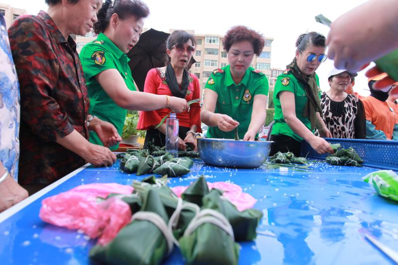 社區(qū)活動現(xiàn)場包粽子比賽中