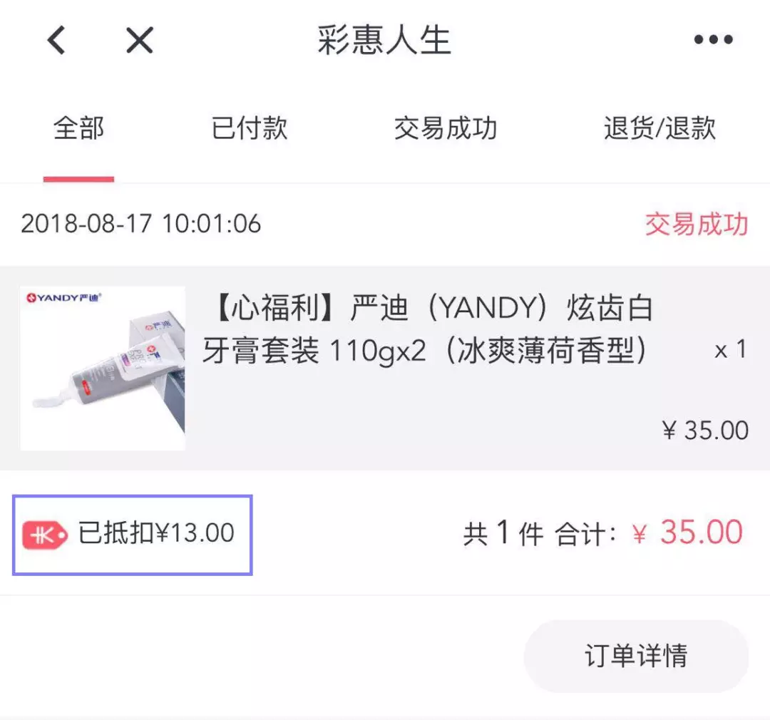 訂單支付成功后,支付成功頁(yè)面會(huì)顯示購(gòu)物金額及最新的抵扣物業(yè)費(fèi)信息。