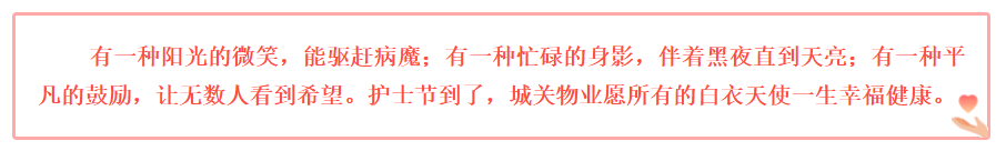 是每一個(gè)微小卻又強(qiáng)大的他們, 治愈著我們的身心, 守護(hù)著我們的生命安全。 因?yàn)橛兴麄儯?/span> 病毒來襲時(shí)我們不再害怕, 因?yàn)橛兴麄儯?/span> 我們才看到了這場戰(zhàn)“疫”的希望…… 讓我們一起, 向所有奮斗在工作崗位上的白衣天使, 致敬! 祝所有白衣天使節(jié)日快樂! 你們辛苦了!