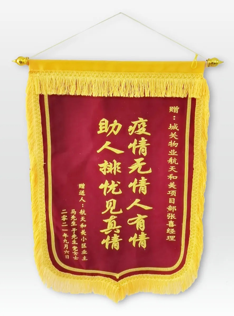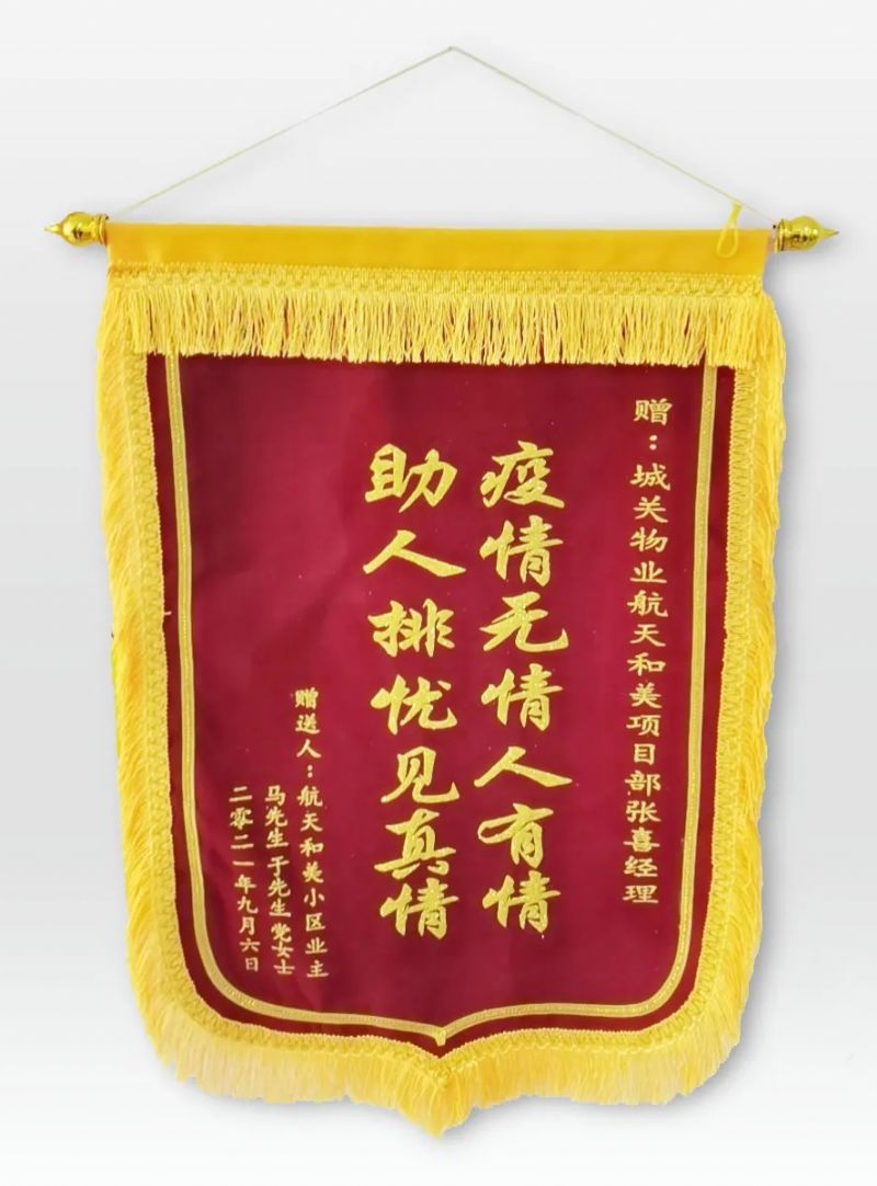 自從開放60歲以上老年人接種新冠疫苗以來,腿腳不便的老年人如何前往定點(diǎn)醫(yī)療機(jī)構(gòu)接種就成的一大難題,航天和美小區(qū)的工作人員在得知老年人的訴求后,主動(dòng)提出用私家車接送小區(qū)老年人前往醫(yī)療結(jié)構(gòu),我們貼心的服務(wù)業(yè)得到了業(yè)主認(rèn)可,小區(qū)住戶專程送來了“疫情無情人有情,助人排憂見真情”的錦旗來感謝城關(guān)物業(yè)人給予他們的幫助與支持。