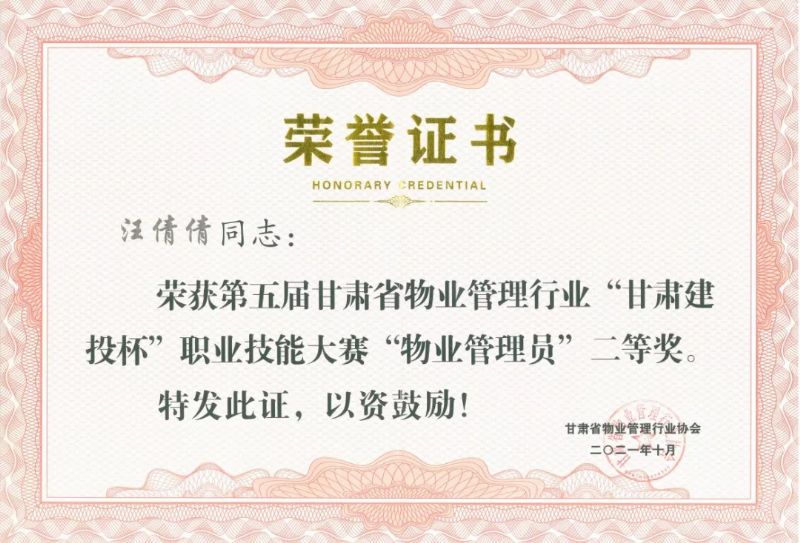 汪倩倩榮獲物業(yè)管理員組二等獎