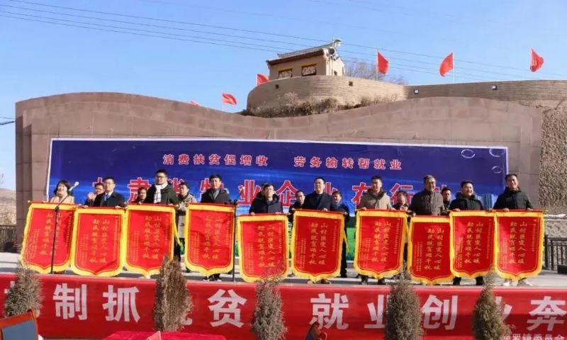 下午,“消費扶貧促增收,勞務(wù)輸出幫就業(yè)”公益活動在榜羅鎮(zhèn)會議紀念館廣場正式開啟。