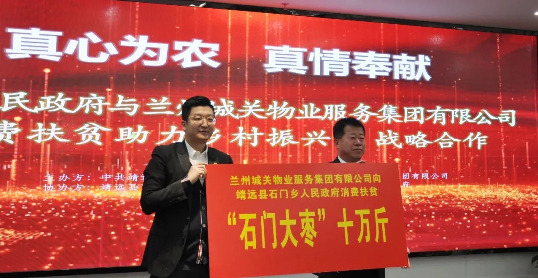 儀式上,靖遠縣石門鄉(xiāng)與蘭州城關物業(yè)服務集團有限公司簽訂了《消費扶貧助力鄉(xiāng)村振興戰(zhàn)略合作意向協(xié)議》,并現(xiàn)場消費扶貧石門大棗十萬斤。同時,雙方共同啟動消費扶貧助力鄉(xiāng)村振興戰(zhàn)略合作,還就下一步深度合作進行了深入的洽談和交流。