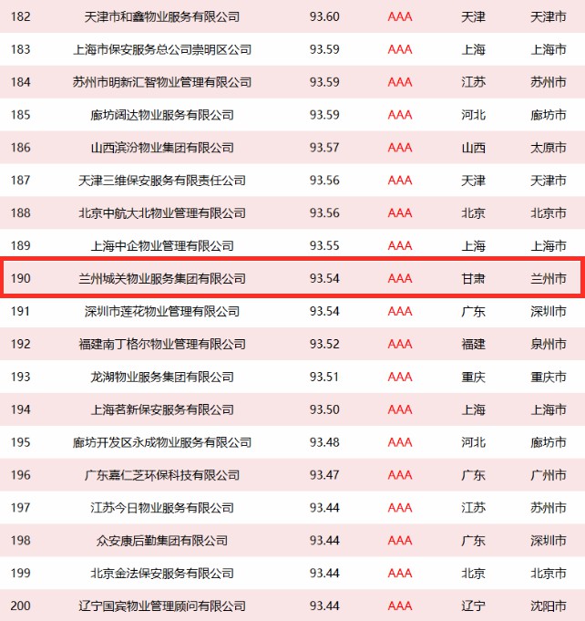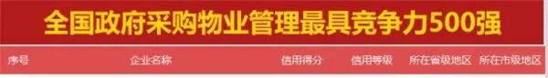 3月12日,政府采購大數(shù)據(jù)研究院和政府采購大數(shù)據(jù)網(wǎng)聯(lián)合發(fā)布了全國政府采購物業(yè)管理服務(wù)最具競爭力500強(qiáng),城關(guān)物業(yè)憑著過往良好的履約情況和風(fēng)險(xiǎn)管控能力成功入選,以93.54分的信用得分榮獲第190名,成為甘肅省唯一入選前500強(qiáng)的企業(yè)。