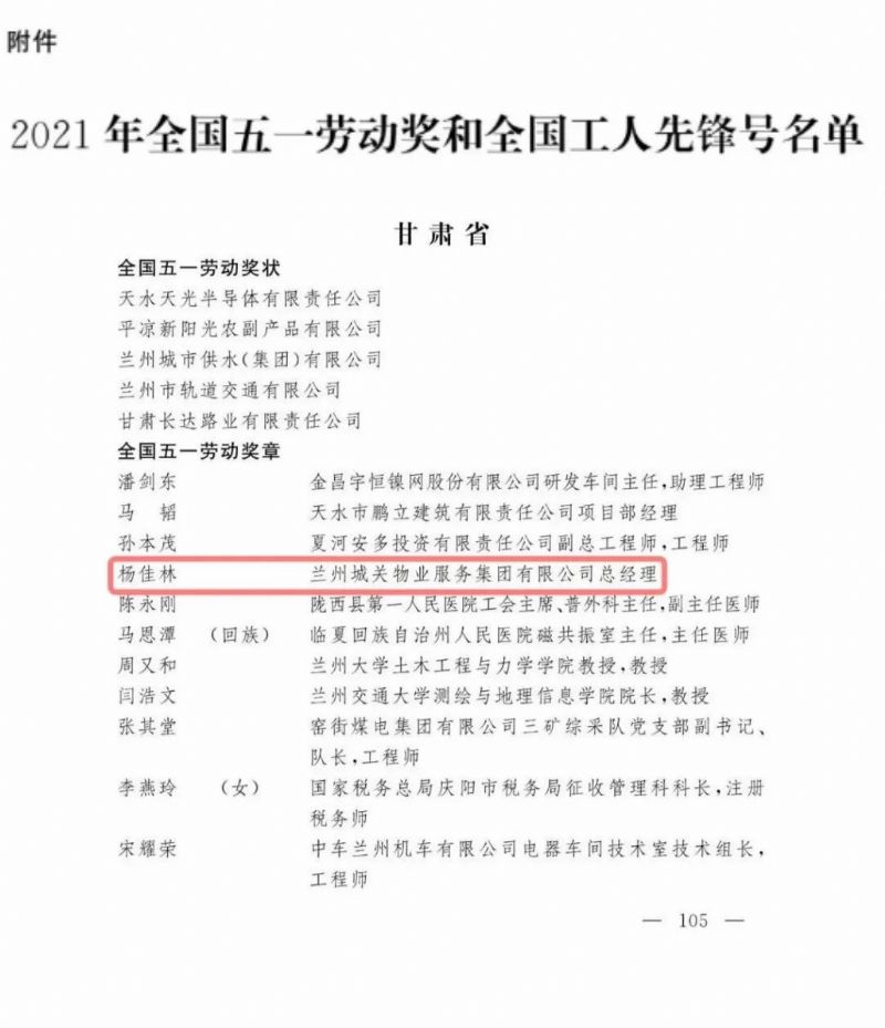 作為一名年輕的企業(yè)家,楊佳林在企業(yè)中積極推動“黨工共建”,實現(xiàn)企業(yè)民主管理的制度化、常態(tài)化,在全面打贏脫貧攻堅戰(zhàn)的過程中,蘭州城關物業(yè)主動對接貧困山區(qū),充分挖掘社區(qū)消費潛力,建立消費扶貧產(chǎn)品的“綠色通道”,以實際行動助力鄉(xiāng)村振興。正是因為楊佳林對社會和時代的責任感,在他的帶領下,蘭州城關物業(yè)先后獲得“全國五一勞動獎狀”“全省非公經(jīng)濟黨建示范點”等300余項榮譽,楊佳林本人也相繼獲得了 “甘肅省五一勞動獎章”、“甘肅物業(yè)行業(yè)貢獻獎”、“甘肅省技術標兵”、全省百萬職工職業(yè)技能素質(zhì)提升活動“優(yōu)秀組織者”、蘭州市首批“金城創(chuàng)新創(chuàng)業(yè)非公企業(yè)家”等多項榮譽。