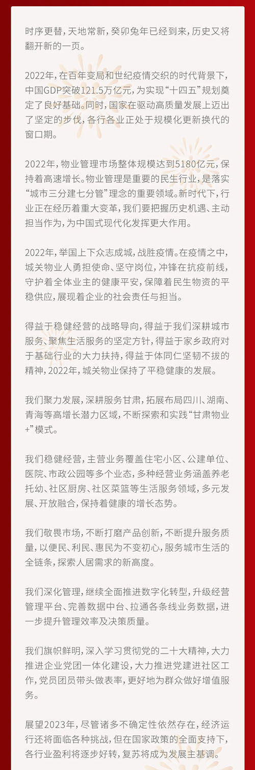 Copyrights © All Rights Reserved 版權(quán)所有 蘭州城關(guān)物業(yè)服務(wù)集團(tuán)有限公司 備案號(hào):隴ICP備10200329號(hào) 設(shè)計(jì)制作:宏點(diǎn)網(wǎng)絡(luò)
