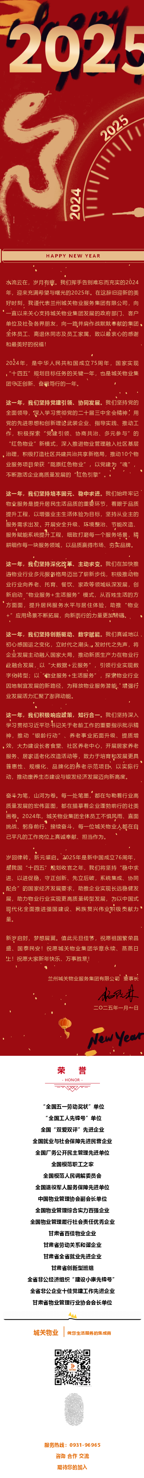 蘭州城關(guān)物業(yè)集團(tuán)二〇二五年新年賀詞